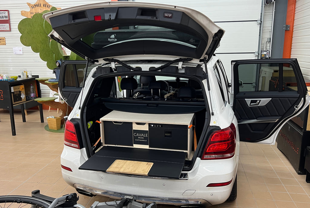 La Cavale Mini est une malle de voyage compacte et modulable, pensée pour transformer facilement votre coffre en aménagement nomade. Cuisine, rangements, couchage, frigo… Configurez votre malle Cavale Mini sur‑mesure pour vos aventures en solo, en couple ou en famille.